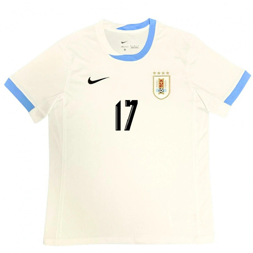 Danxen Donna Maglia Uruguay Juan Martin #17 Bianco Blu Kit Gara Away 24-26 Maglietta